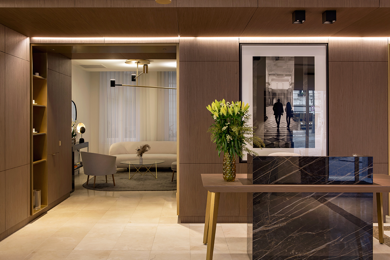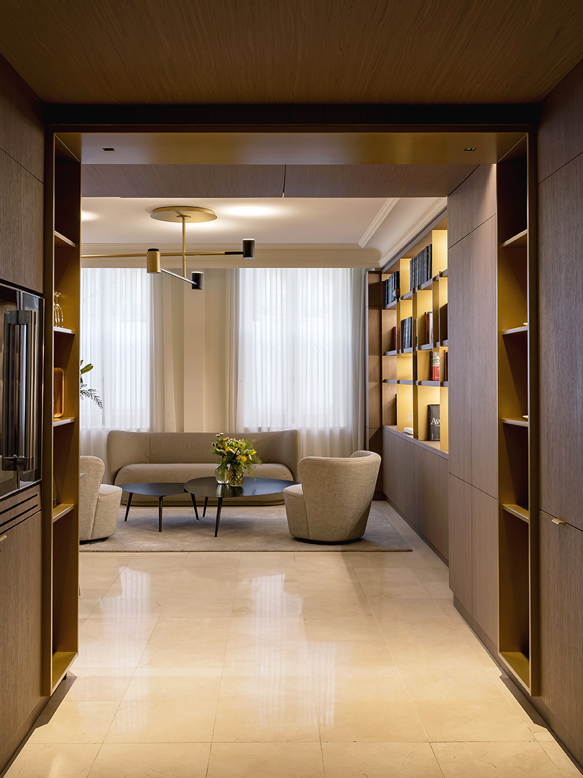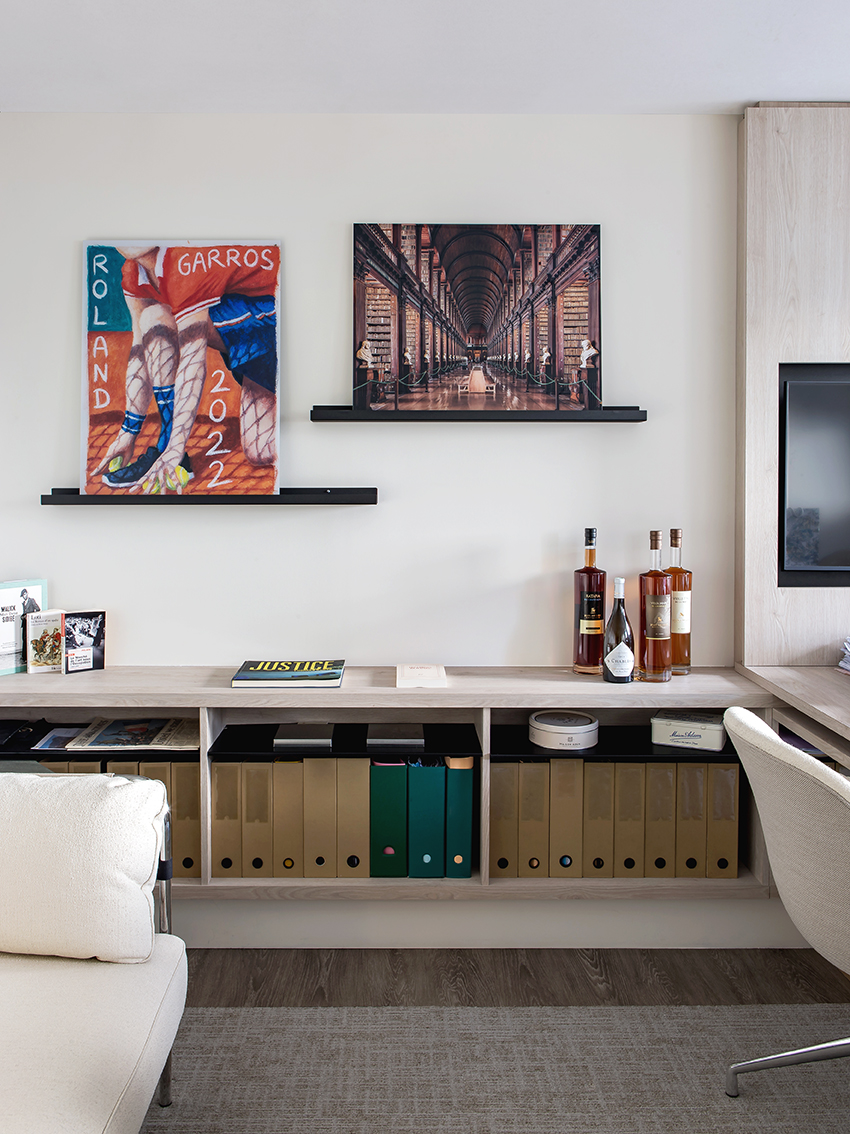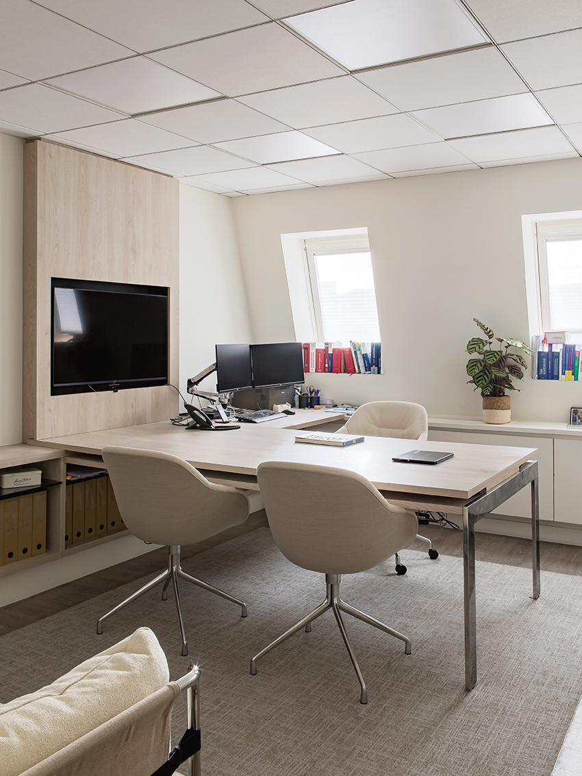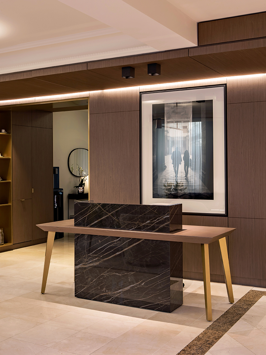 Découvrez l’univers chaleureux et sophistiqué du cabinet d’avocats FTMS à travers sa bibliothèque aux lignes pures, réalisée sur mesure en placage bois soulignés par des intercalaires en tôle laquée et son comptoir d’accueil sculptural. L’ensemble du projet s’articule autour d’une photographie de Raymond Depardon offerte à l’un des avocats du cabinet. Immortalisant la cour d’un palais de justice, il devient la pièce maîtresse du projet.