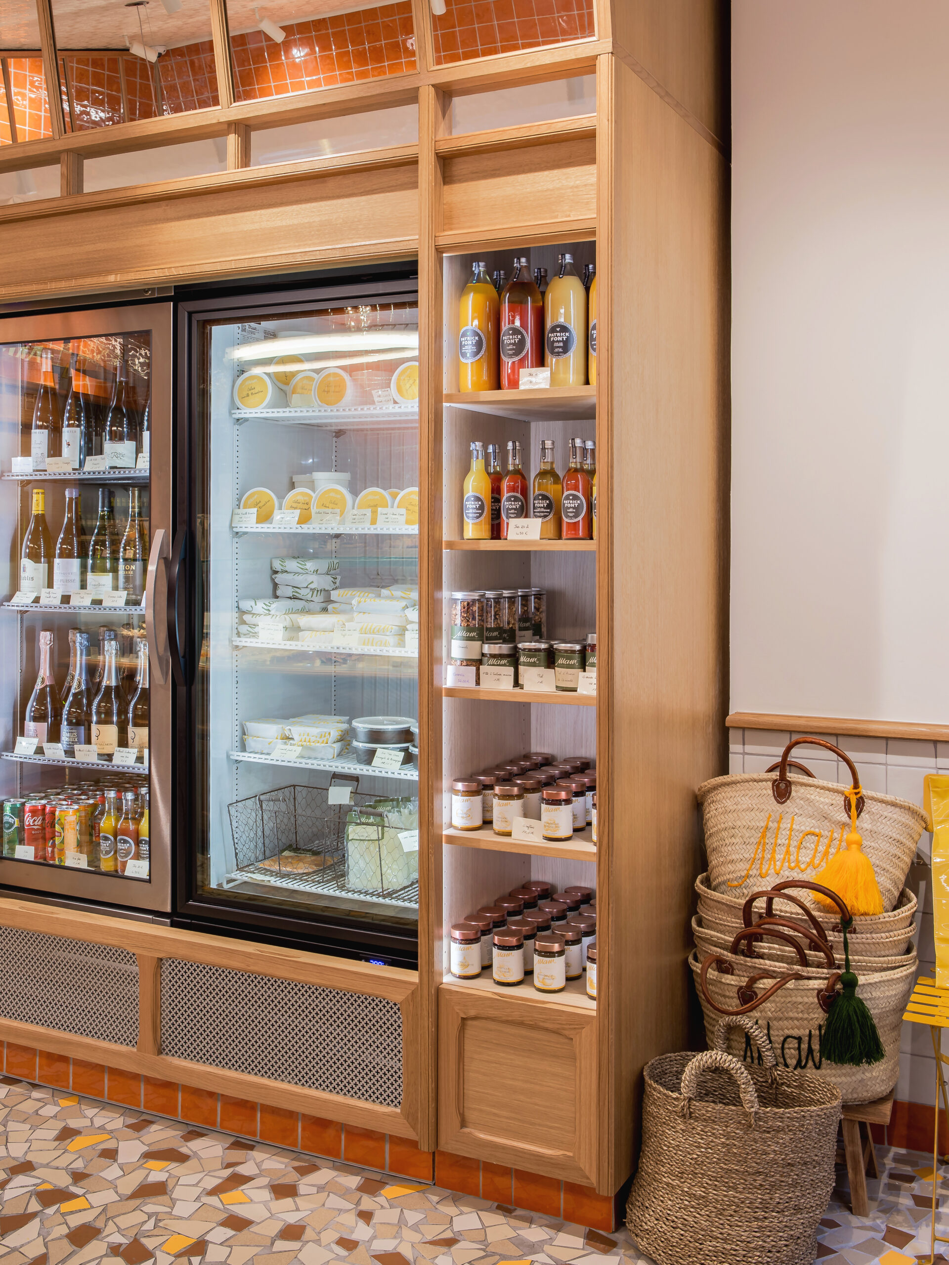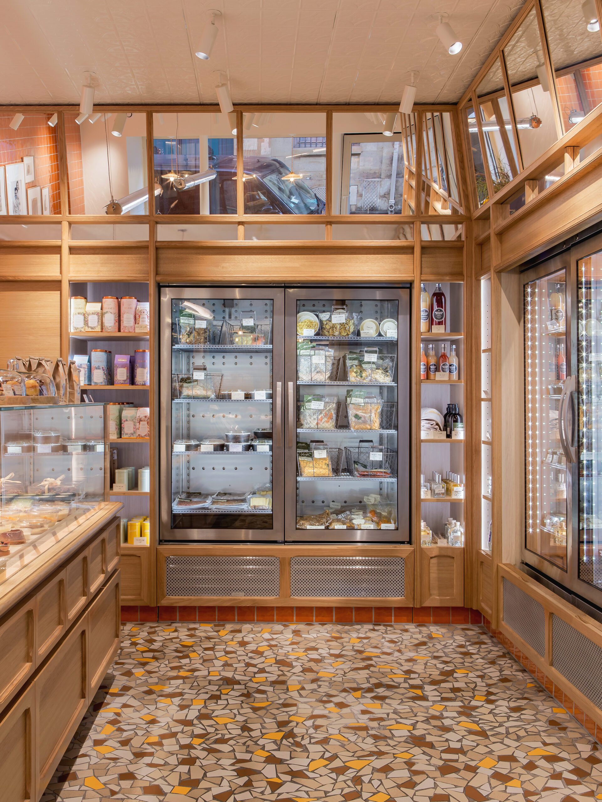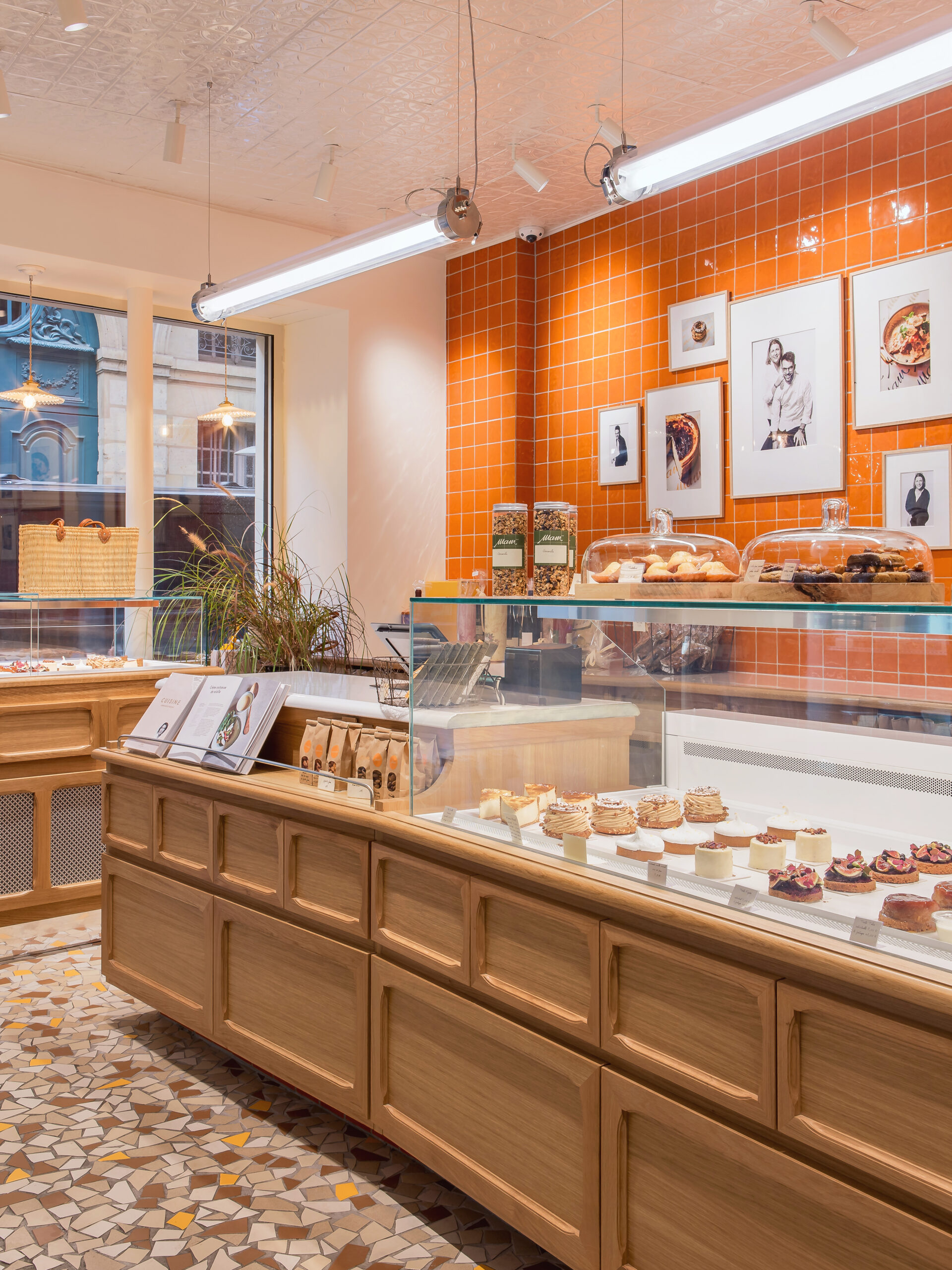 Nouvelle adresse pour déguster les plaisirs salés de la cheffe Stéphanie Lequellec et les saveurs sucrées concoctées par le pâtissier Pierre Chirac, la cheffe nous a renouvellé sa confiance pour décliner le concept pensé par l’atelier Saint-Lazare. Inspiré de l’atmosphère des épiceries d’autrefois, il met en avant des codes au style vintage modernisé avec ses meubles de métiers, son sol en carreau cassé et son plafond en relief.